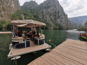 After walking around the center of Skopje on your own, we suggest you rent a car with driver from us and go to a beautiful place – Matka Canyon. It takes only 30-40 minutes to get there. In addition to walking through the canyon and enjoying the beautiful views, we recommend that you buy tickets for a boat ride and visit the Vrelo cave (such a boat ride lasts about 1 hour).